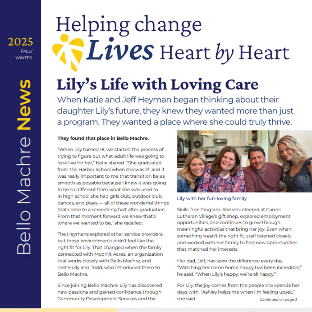 In this issue, you’ll meet Lily, who is reaching new milestones in our Residential Services, and Zachary, a bright five-year-old finding his voice through specialized therapy made possible by the Ray of Hope Program and your generosity. You’ll also see the pride of people like Spike, who receives support through our Community Development Services and Employment Services and finds purpose and belonging in his work.