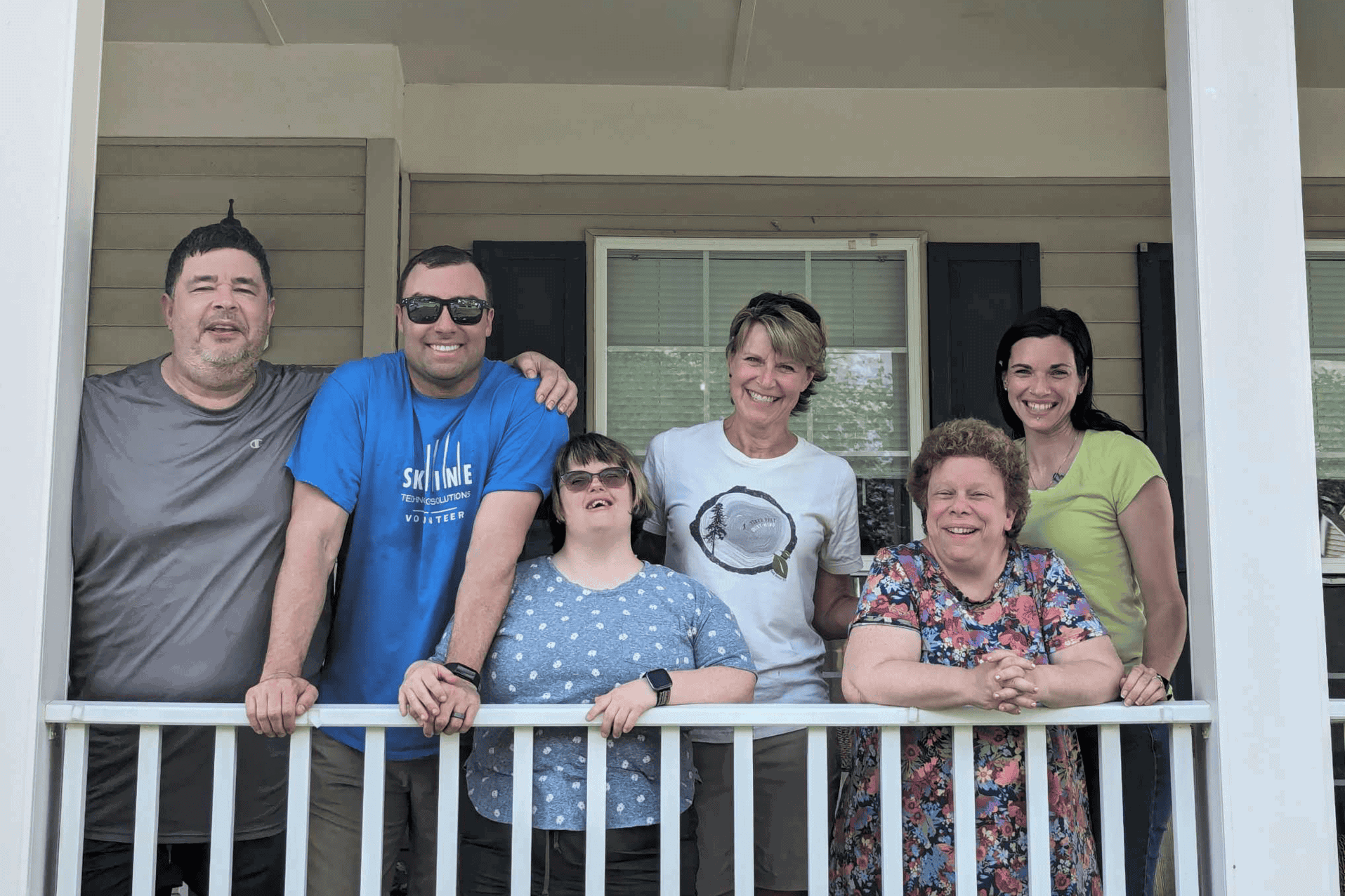 • Group home residents standing on front porch